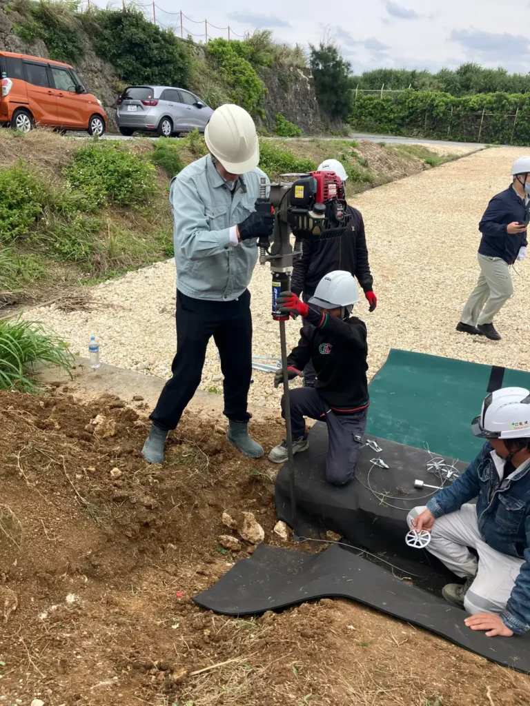 主な検証内容は、台風による強風や塩害が太陽電池パネルおよび防草シートへ与える影響の評価、ならびに簡易な設置・施工方法の確立である。