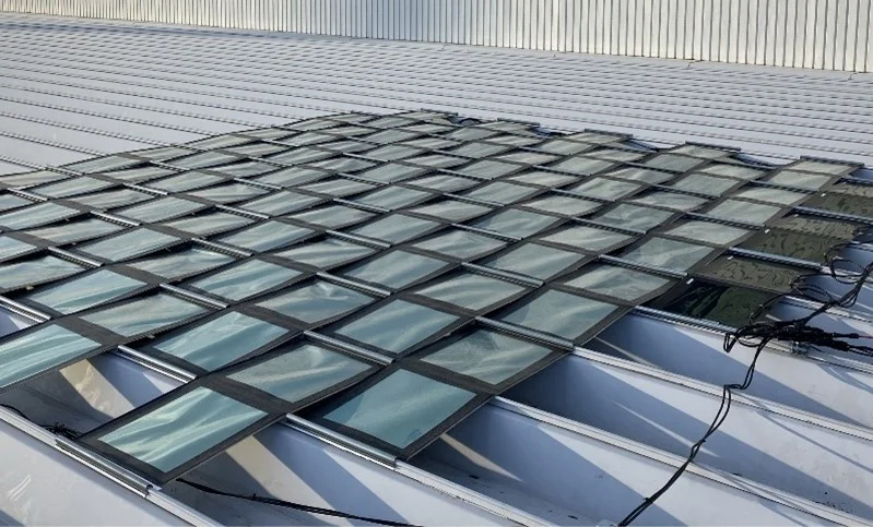 今回、NEDOの「太陽光発電導入拡大等技術開発事業/設置場所に応じた太陽光発電システム技術開発」に採択された、日揮のシート工法は、ペロブスカイト太陽電池をはじめとするフィルム型太陽電池の薄く、軽く、曲がる特性を損なわずに耐荷重性の低い屋根や建物の壁面などへの設置を可能にする。これまでも北海道・苫小牧や神奈川・江の島などで実証試験を重ねてきた。
