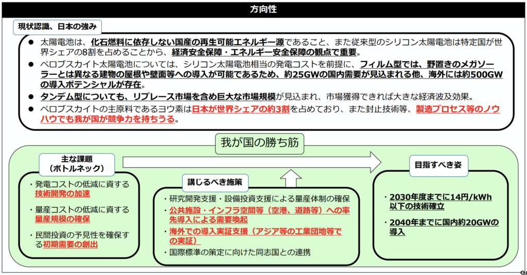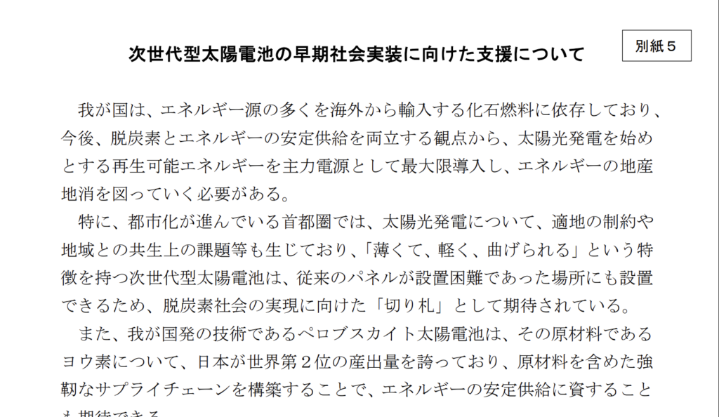 政府がペロブスカイトの政策パッケージを提示